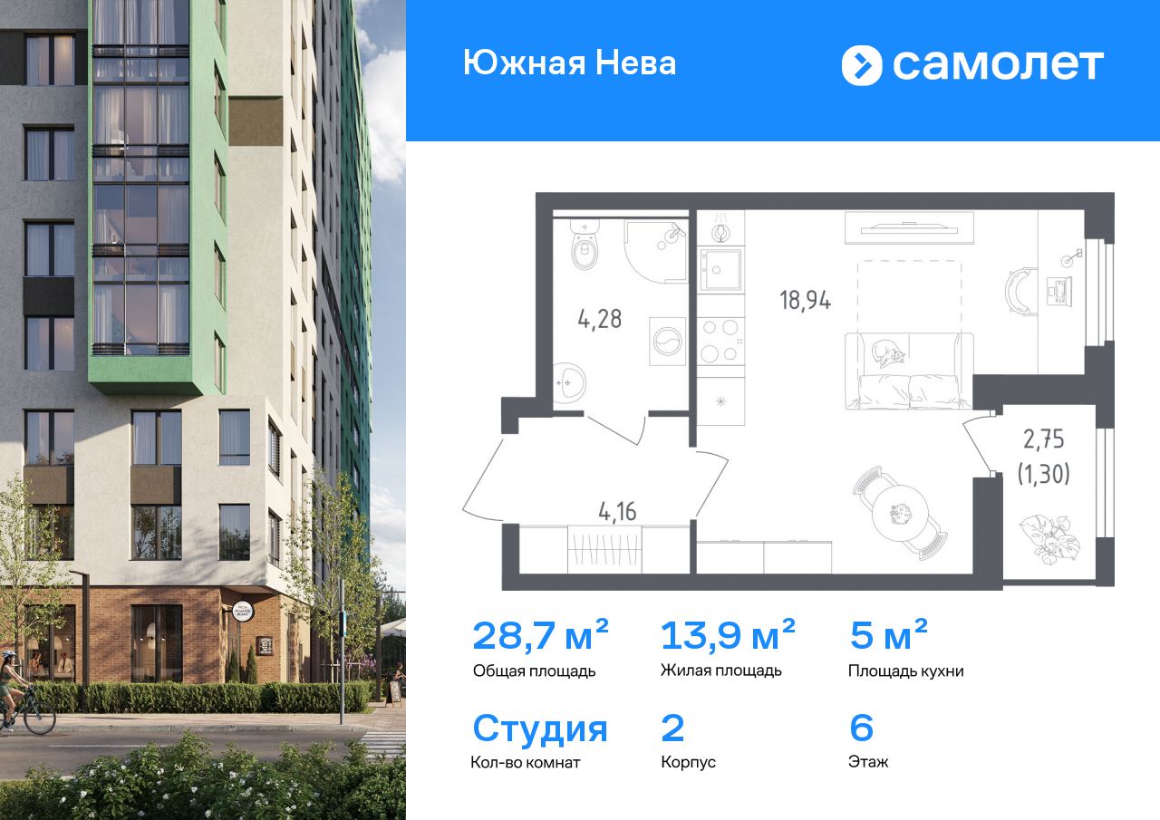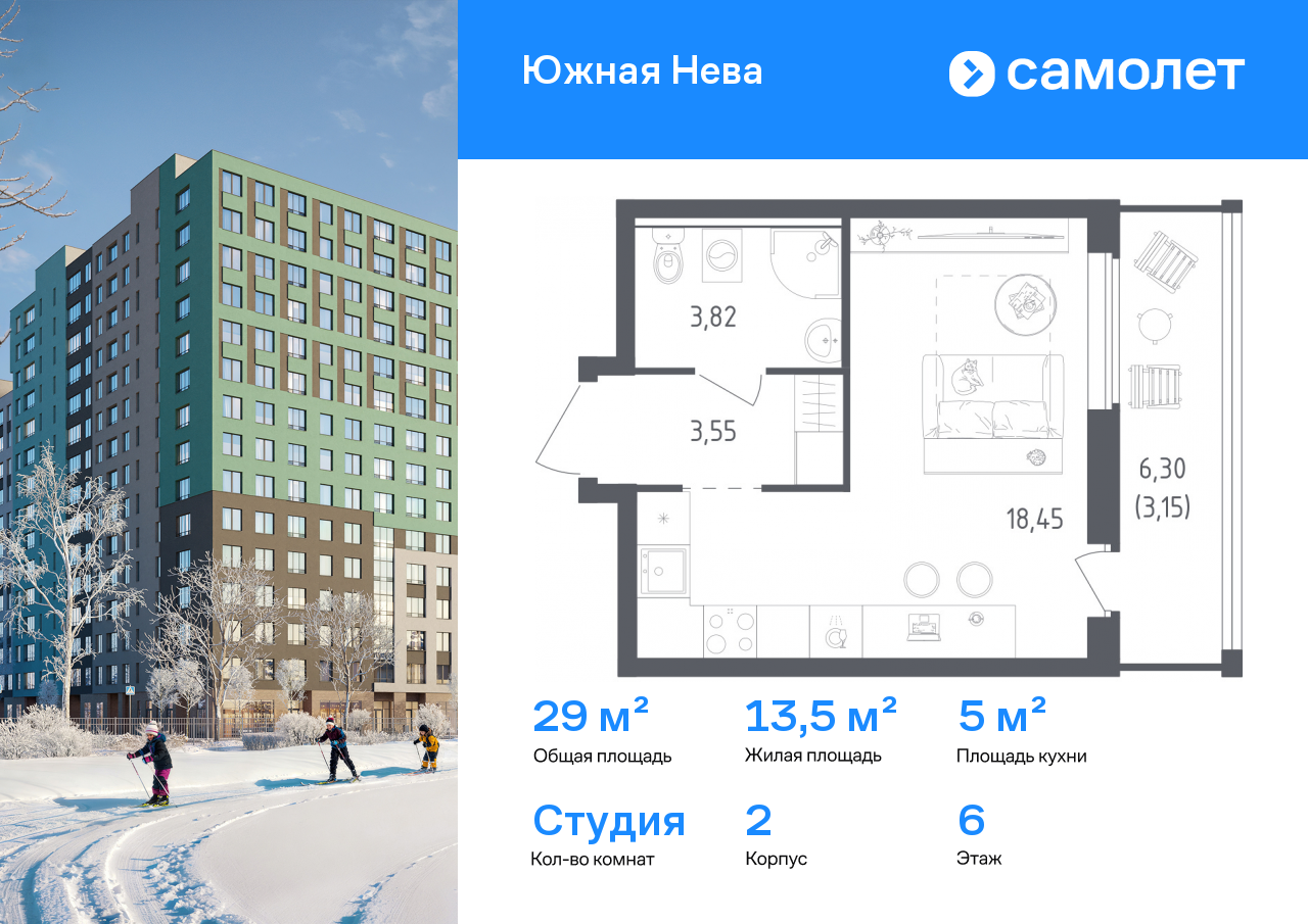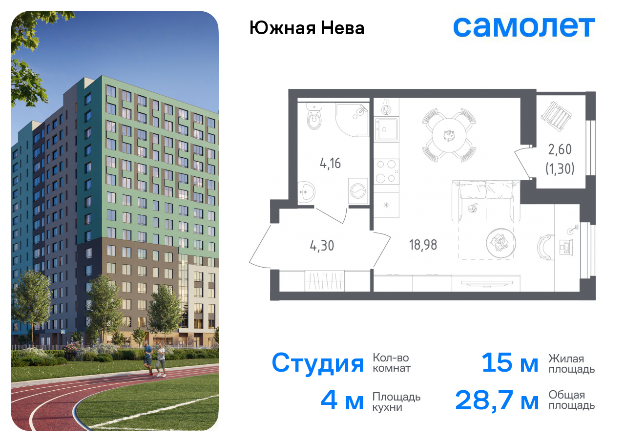 Продается 1-комн. квартира с отделкой. Квартира расположена на 12 этаже 15 этажного монолитно-кирпичного дома (Корпус 1, Секция 1) в ЖК «Южная Нева» от группы «Самолет».