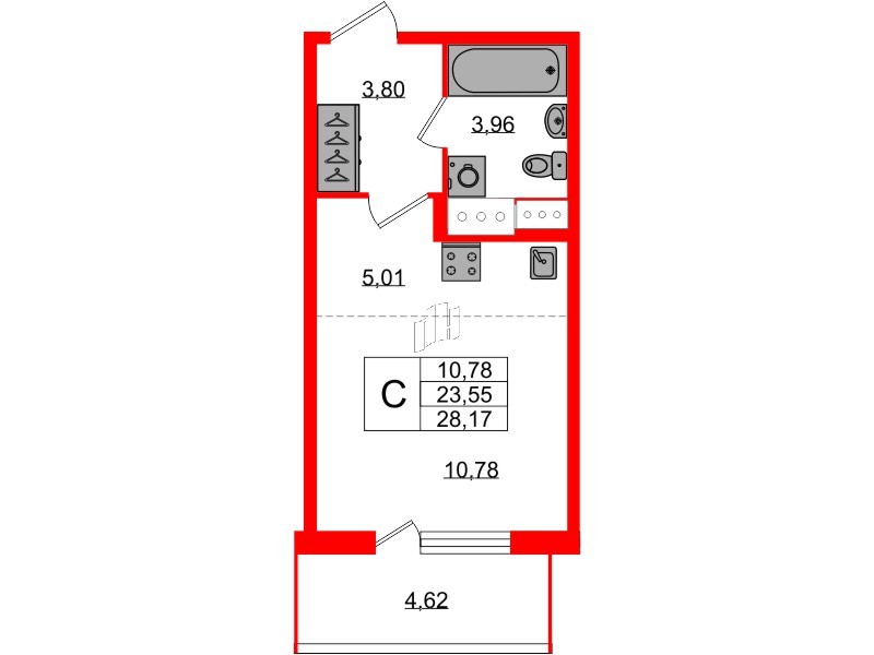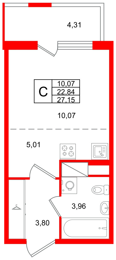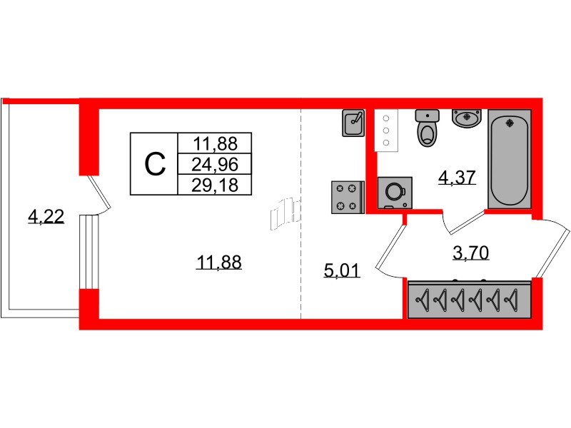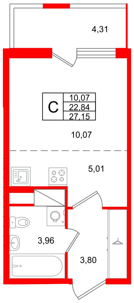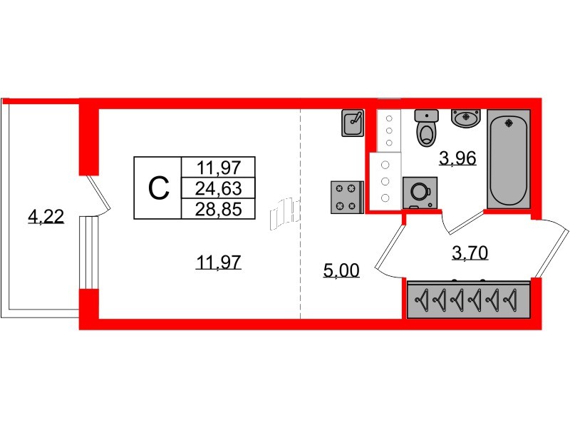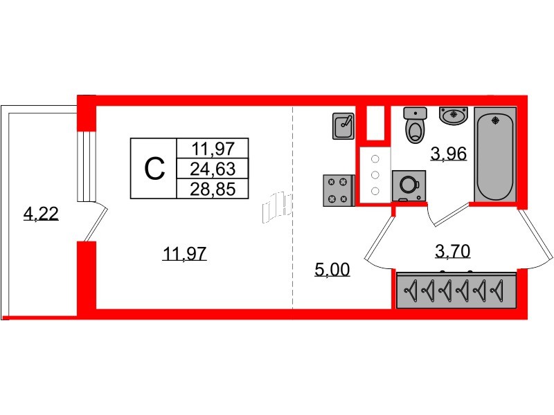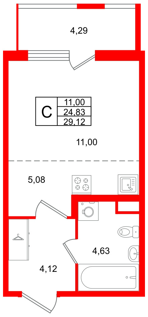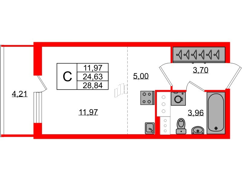 в санузлах полы и стены будут облицованы керамической плиткой;