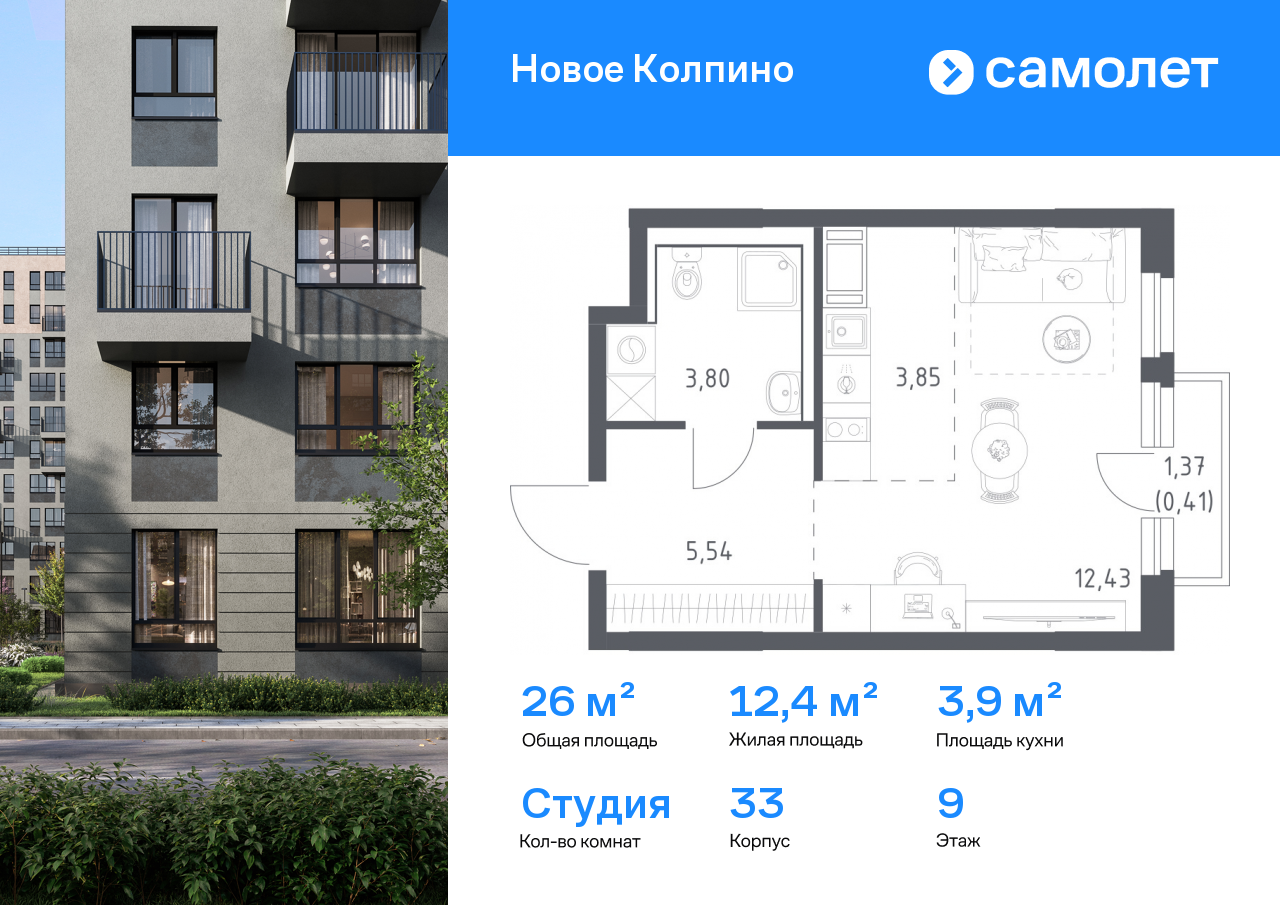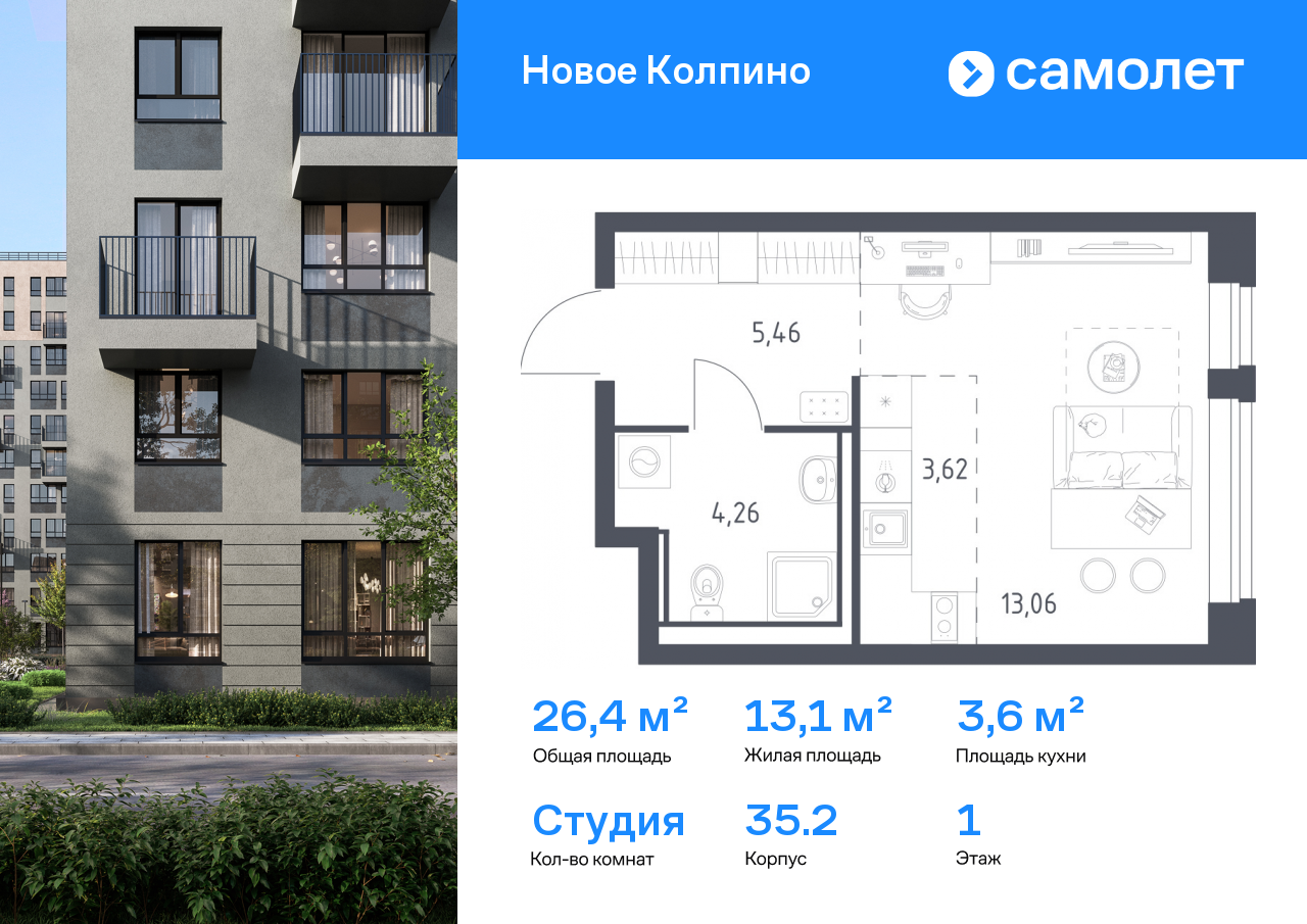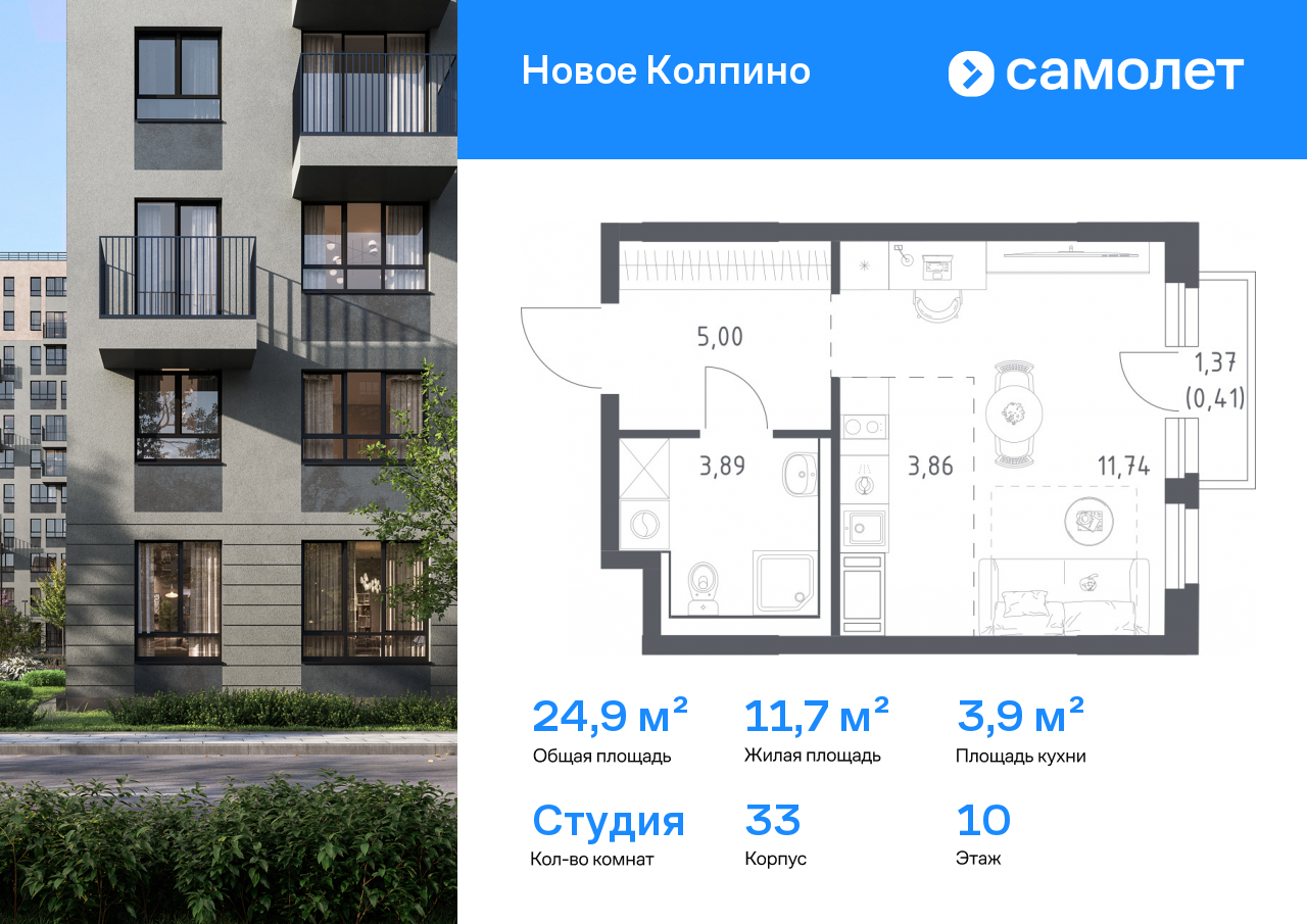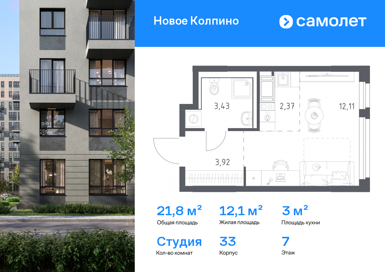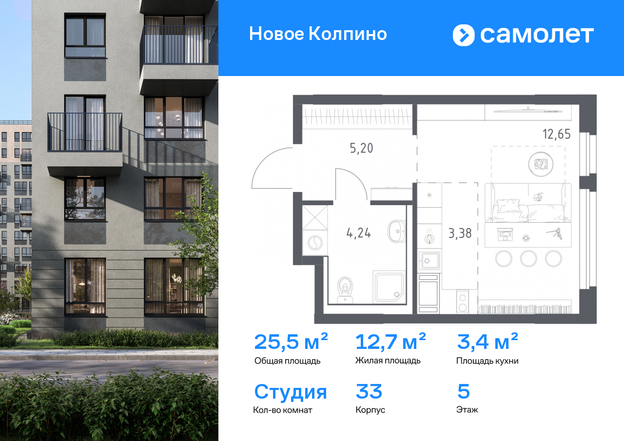Продается 1-комн. квартира с отделкой. Квартира расположена на 5 этаже 11 этажного монолитно-кирпичного дома (Новое Колпино, Корпус 47, Секция 2) в ЖК «Новое Колпино» от группы «Самолет».